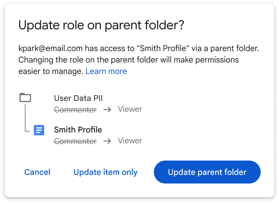 - Modify the role of a specific user (e.g., from Commenter to Viewer).